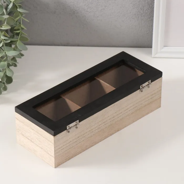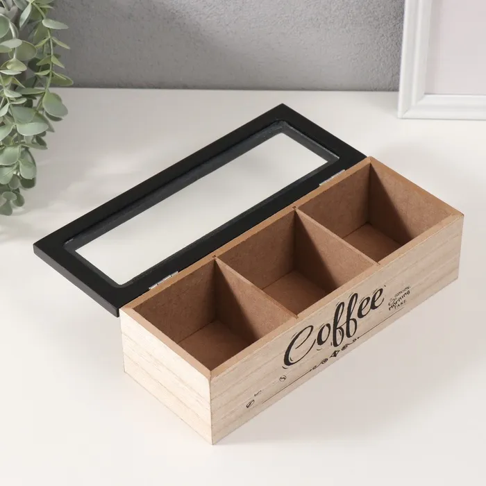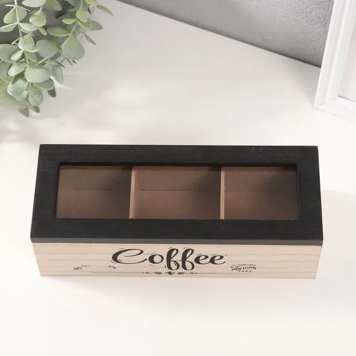 Шкатулка для чая 3 деления «Утро начинается с кофе», дерево, 9×23.4×7.2 см — Характеристики