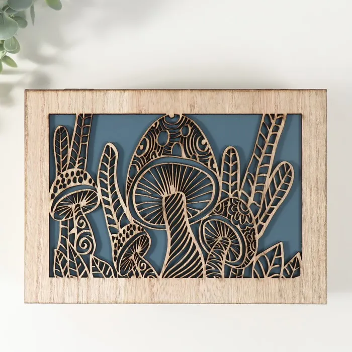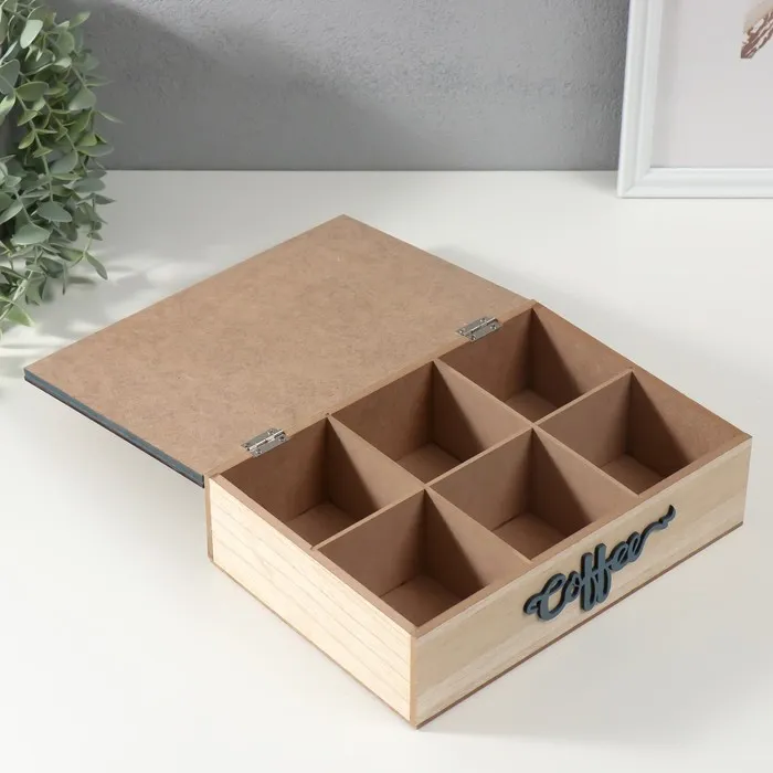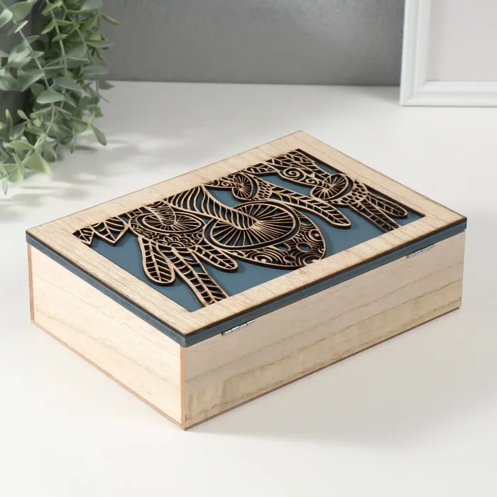 Шкатулка для чая 6 делений «Грибы», дерево, бежево-синяя, 17×24×7 см — Характеристики