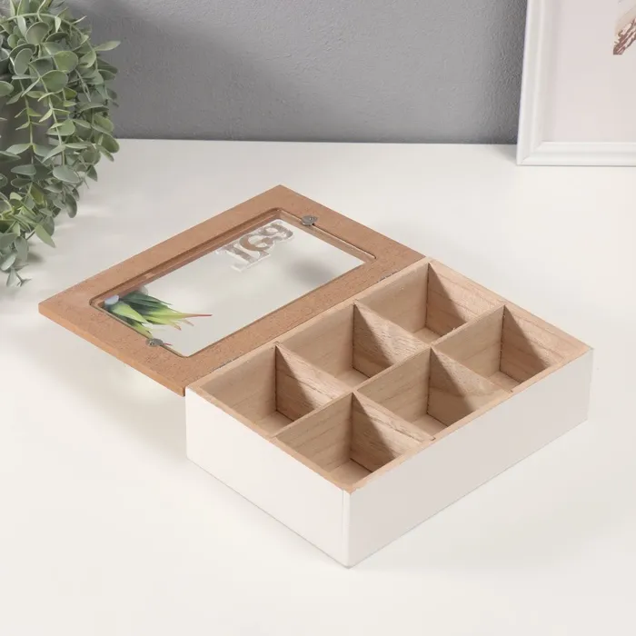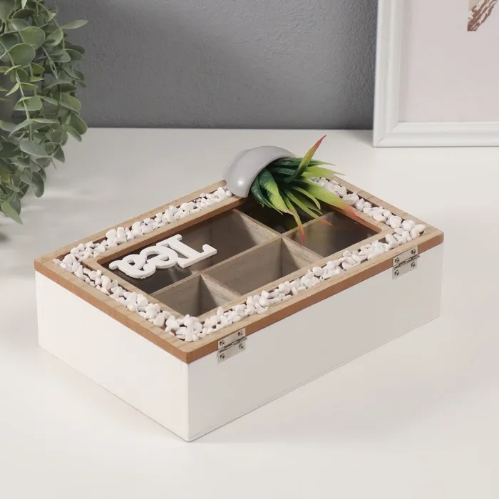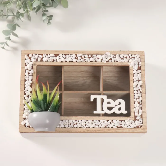 Шкатулка для чая с делениями «Чай. Кактус в горшочке», дерево, 16×23.5×9.5 см — Характеристики