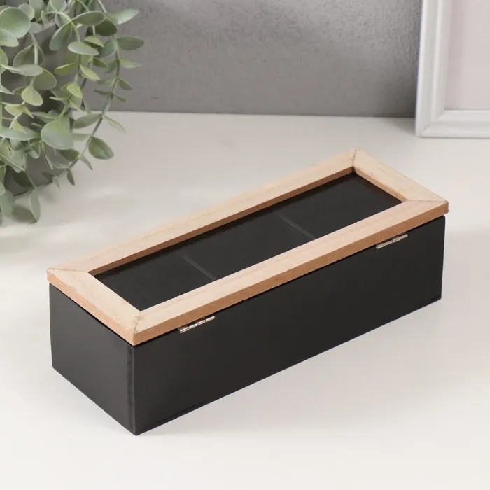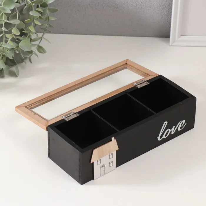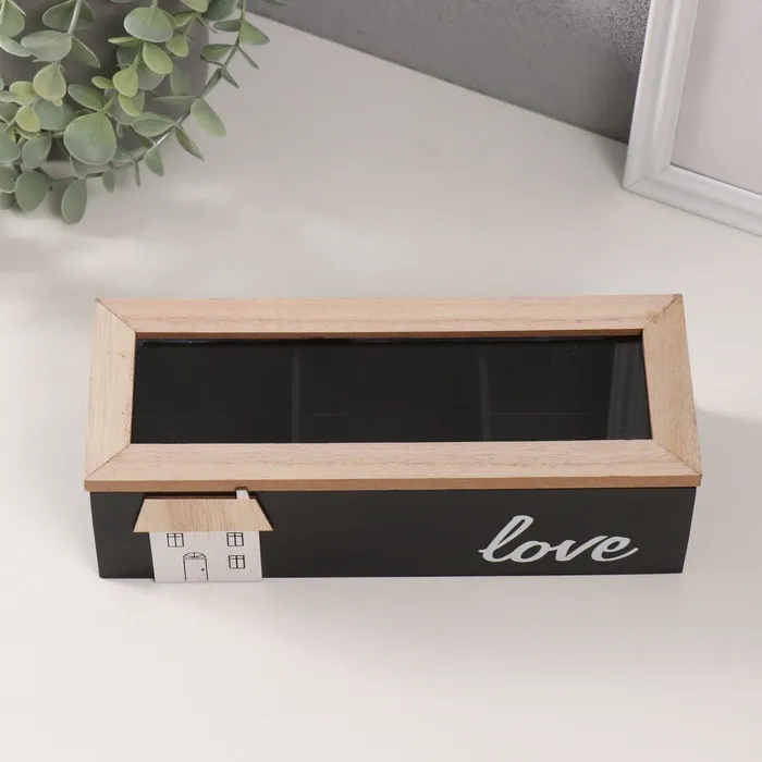 Шкатулка для чая с делениями «Домик», дерево, чёрная, 23.7×9.5×7.5 см — Характеристики