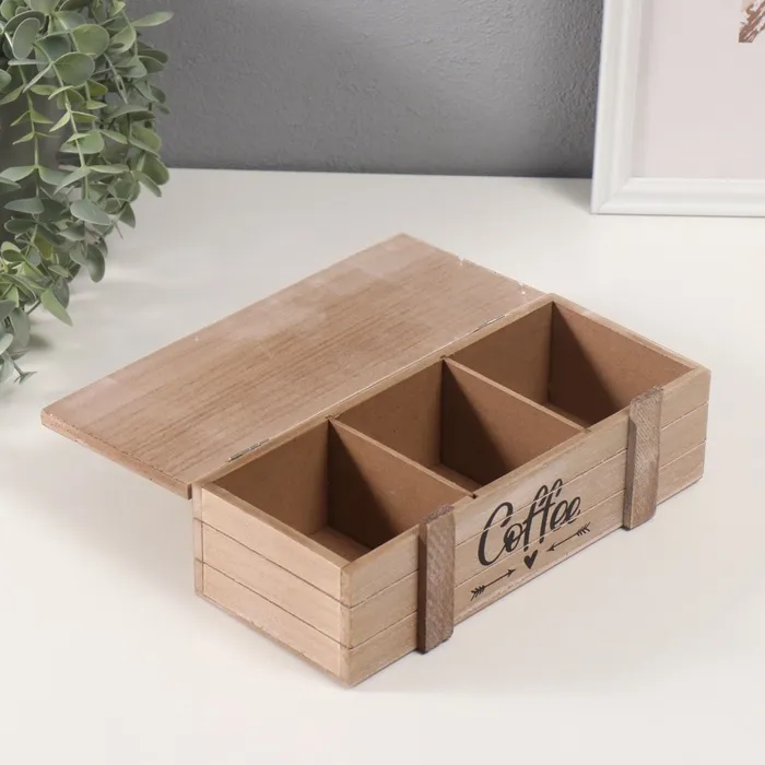 Шкатулка для чая с делениями «Кофемолка», дерево, 10.5×24×7.5 см — Характеристики