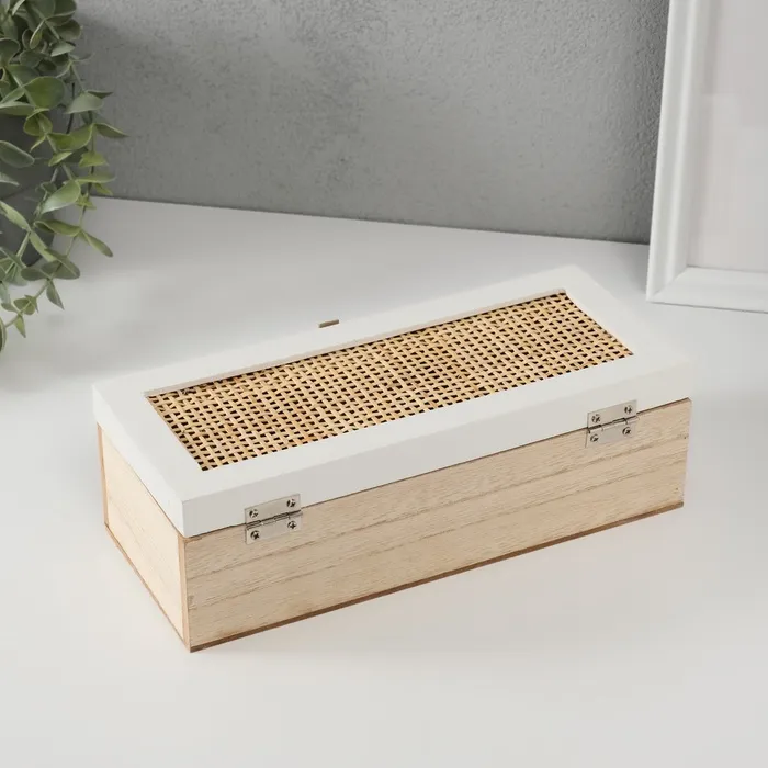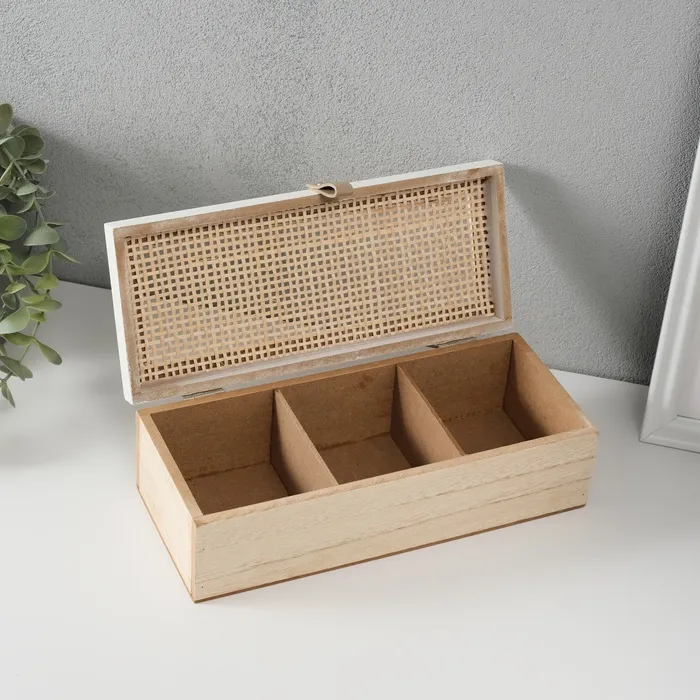 Шкатулка для чая с делениями «Корзинное плетение», дерево, 10×23.5×7 см — Характеристики