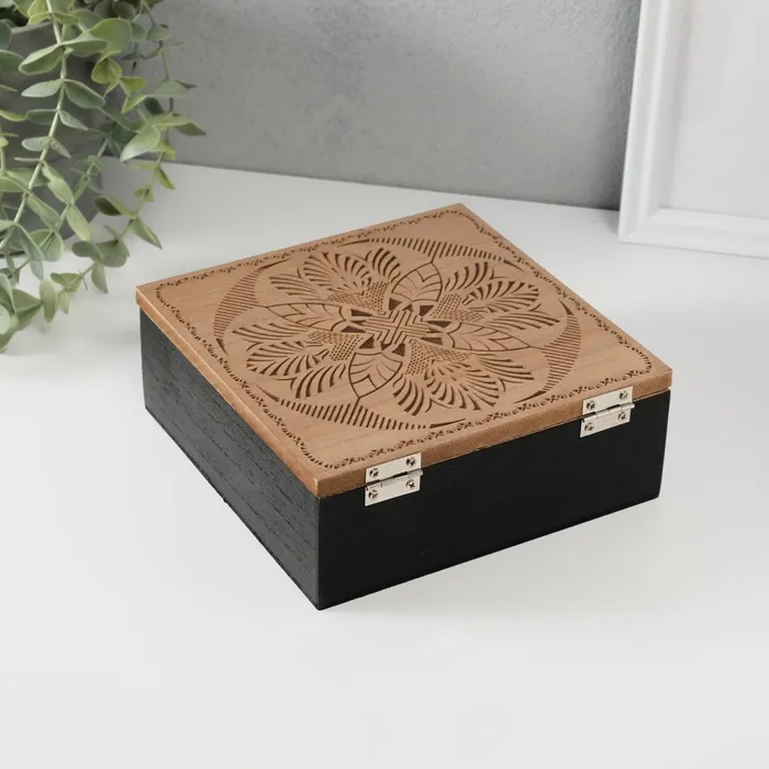 Шкатулка для чая с делениями «Мандала. Релакс и наслаждение», дерево, 16.5×16.5×6.5 см — Характеристики