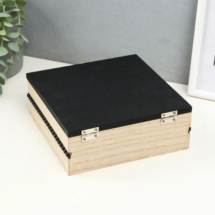 Шкатулка для чая с делениями «Плетение», дерево, чёрный, 18×18.4×6.8 см — Характеристики