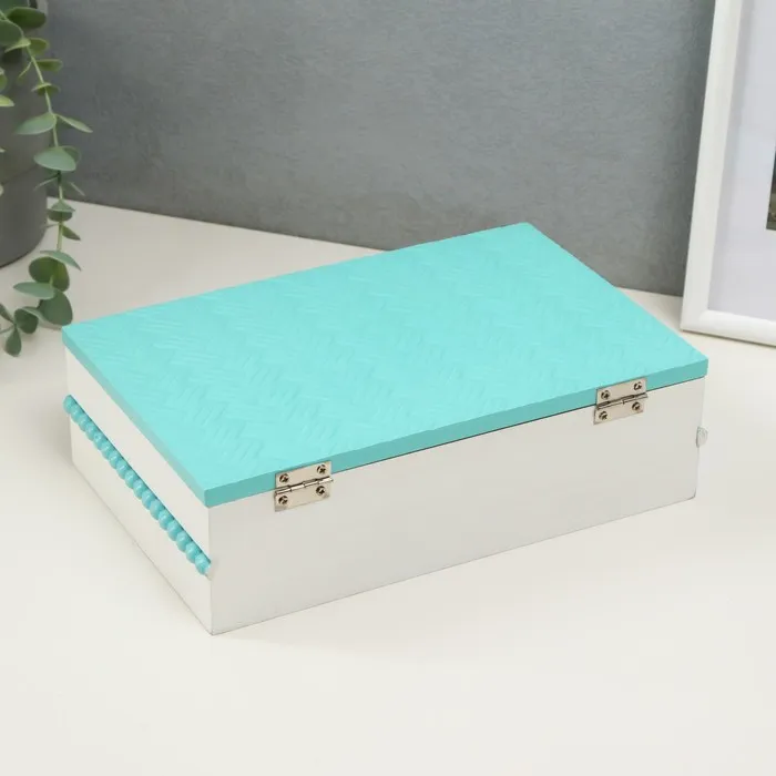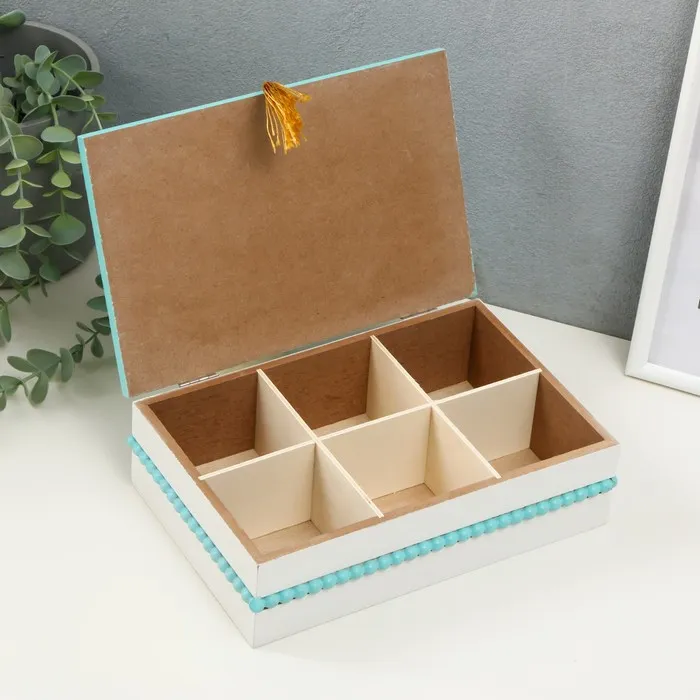 Шкатулка для чая с делениями «Плетение», дерево, голубой, 22.8×15.5×6.8 см — Характеристики