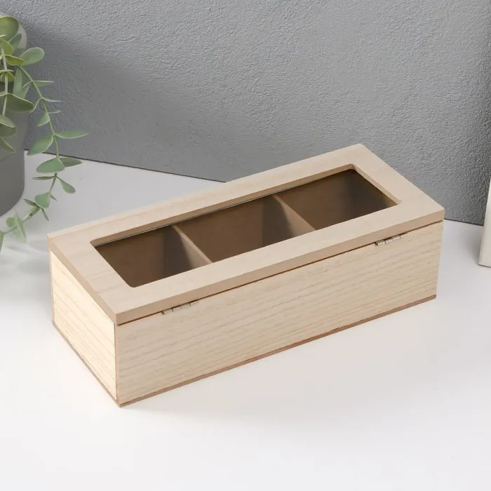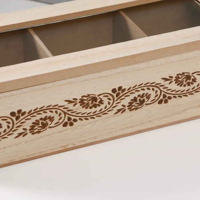Шкатулка для чая с делениями «Цветочный узор», дерево, 24×9.8×7 см — Характеристики
