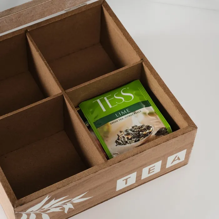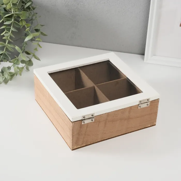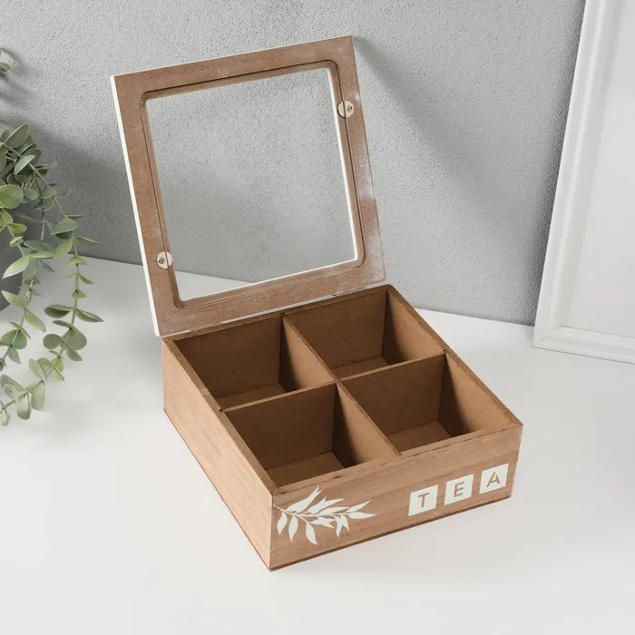 Шкатулка для чая с делениями «Ветка чайного дерева», дерево, 18×18×7 см — Характеристики
