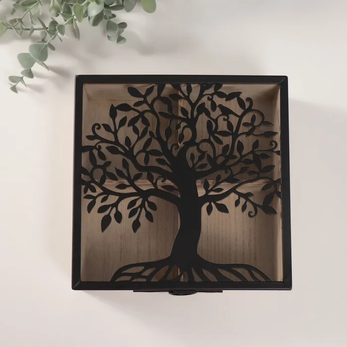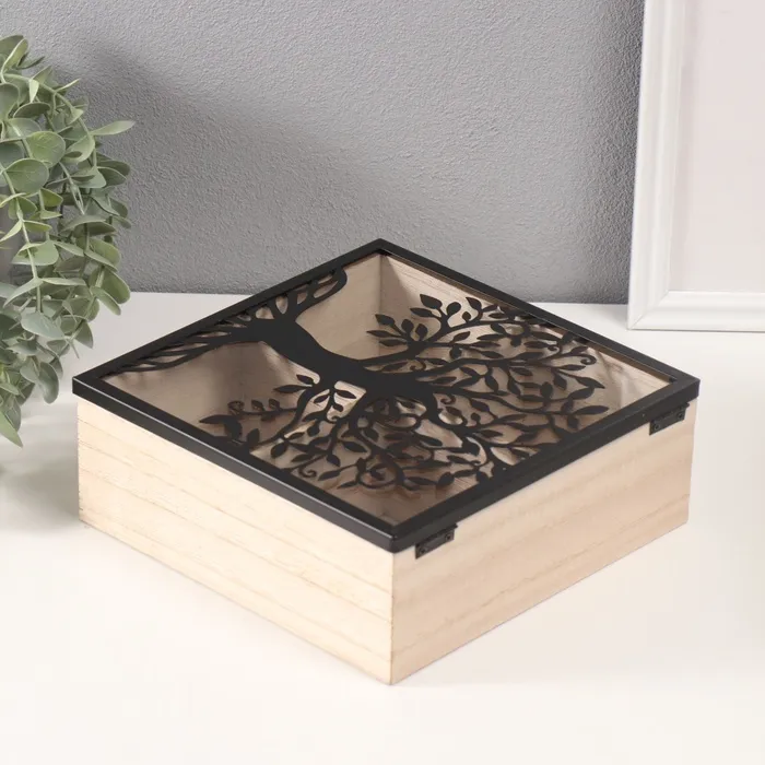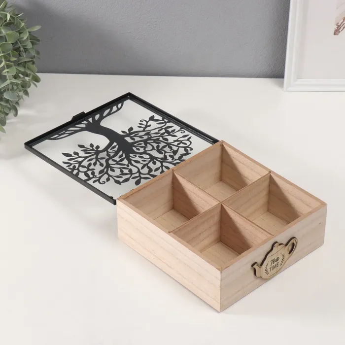 Шкатулка для чая с делениями «Время для чая», дерево, 20.2×20.2×7.3 см — Характеристики