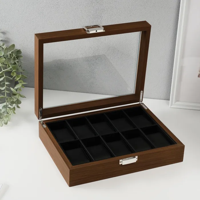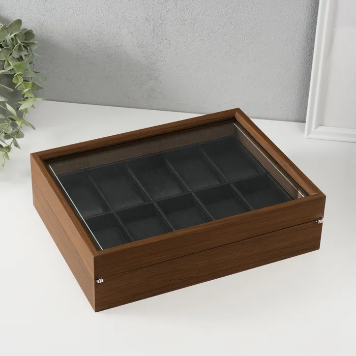 Шкатулка для часов 10 отделений «Дуб», дерево, с серебристой обводкой, 23×29.5×5.8 см — Характеристики
