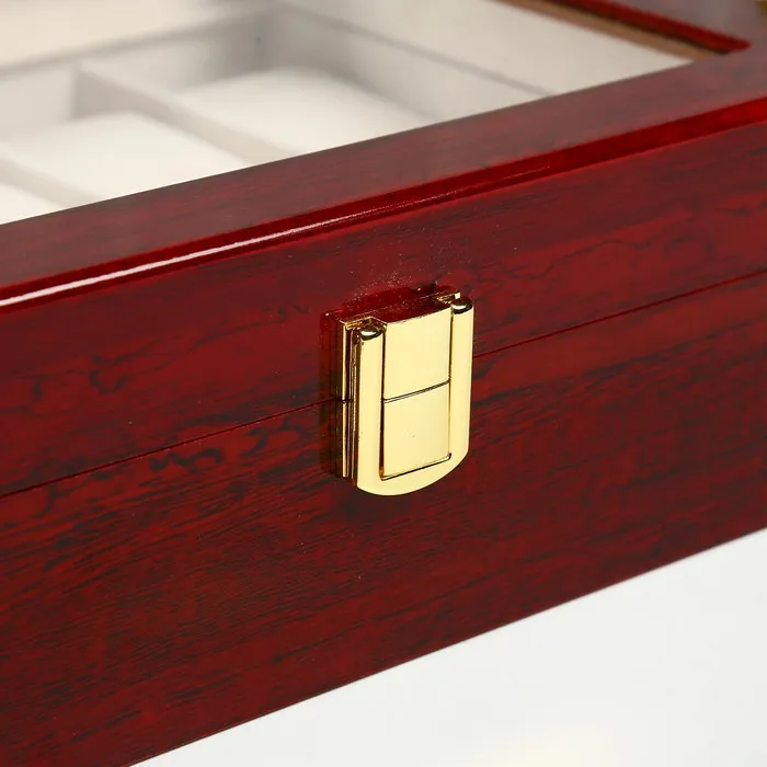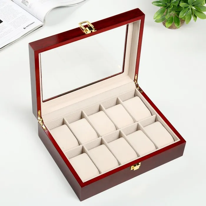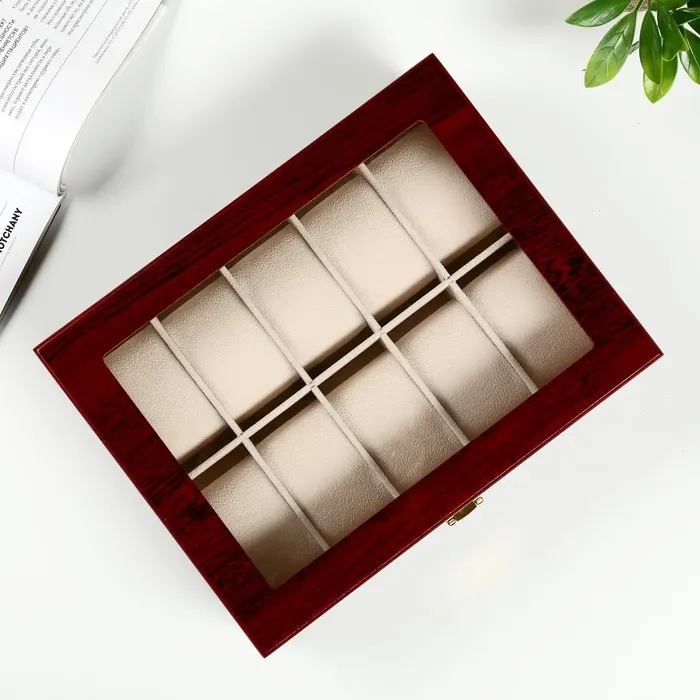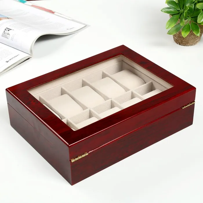 Шкатулка для часов 10 отделений «Красно-коричневая», дерево, лак, 8×26×20 см — Характеристики
