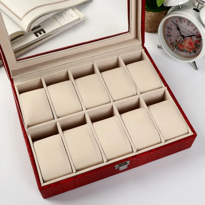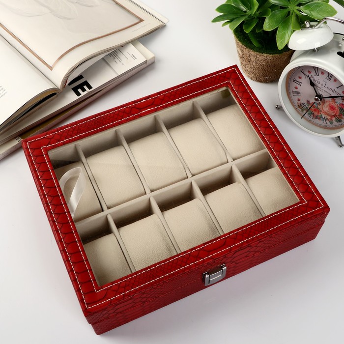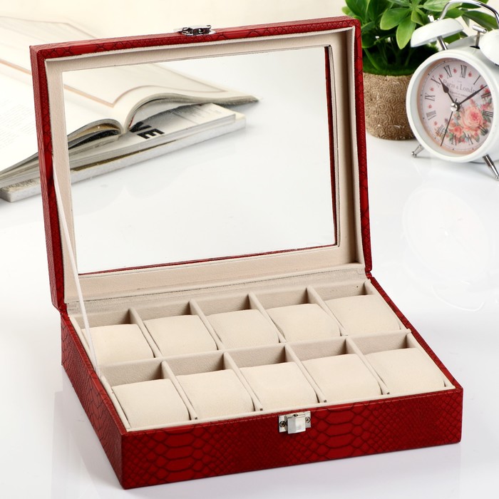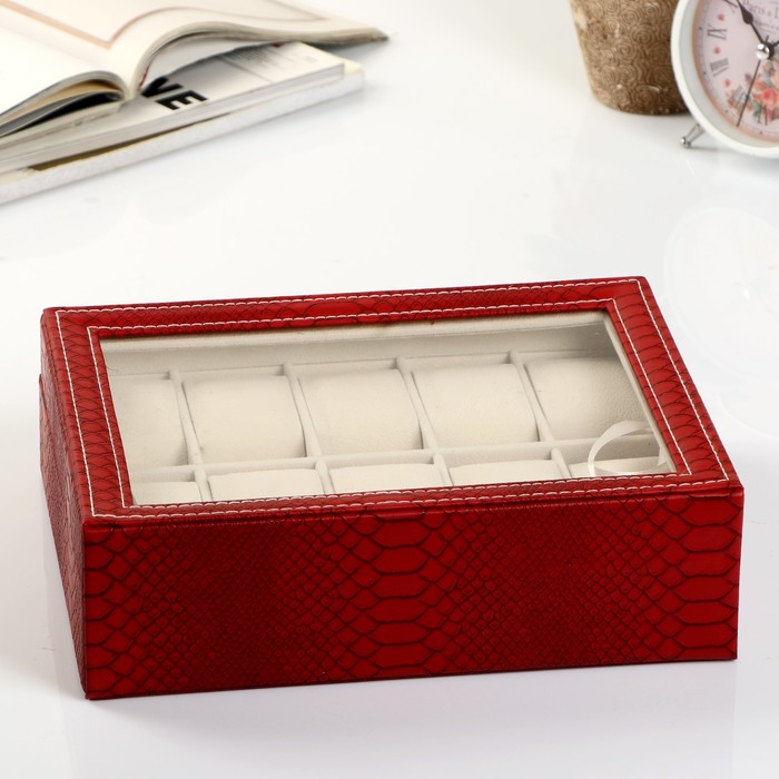 Шкатулка для часов 10 отделений «Питон бордовый с прожилками», искусственная кожа, 7.5×25.5×20 см — Характеристики