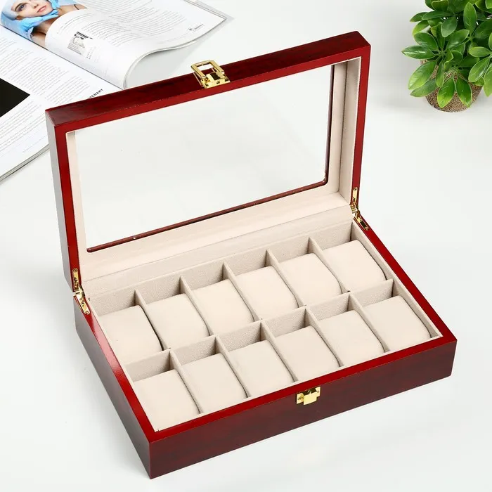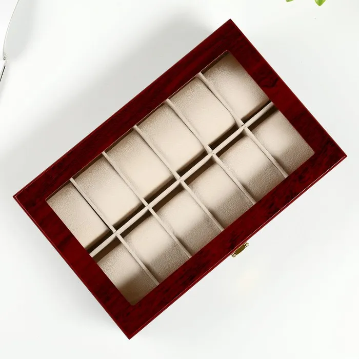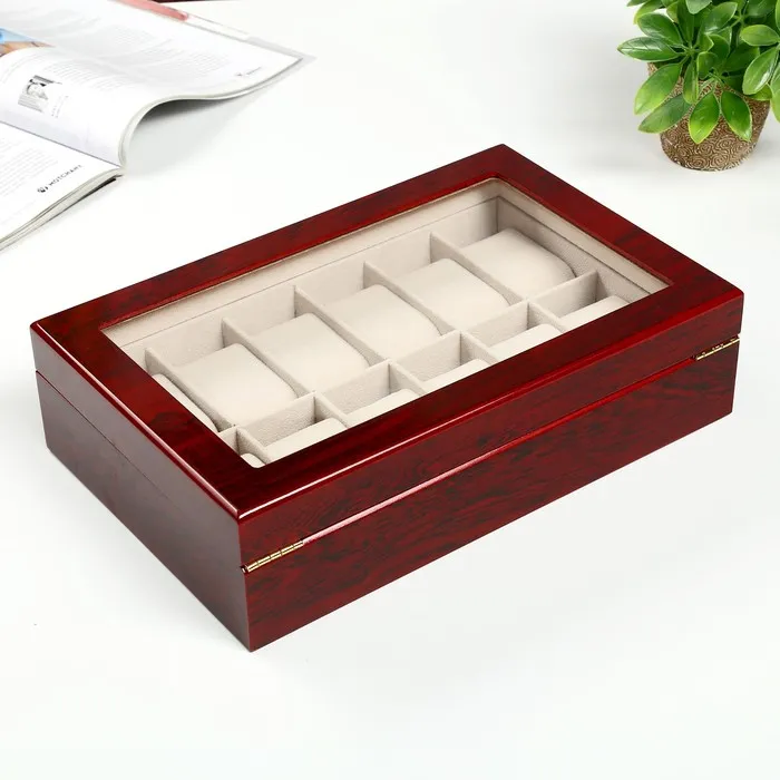 Шкатулка для часов 12 отделений «Красно-коричневая», лак, 8.3×31×20 см — Характеристики