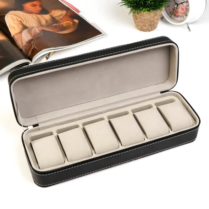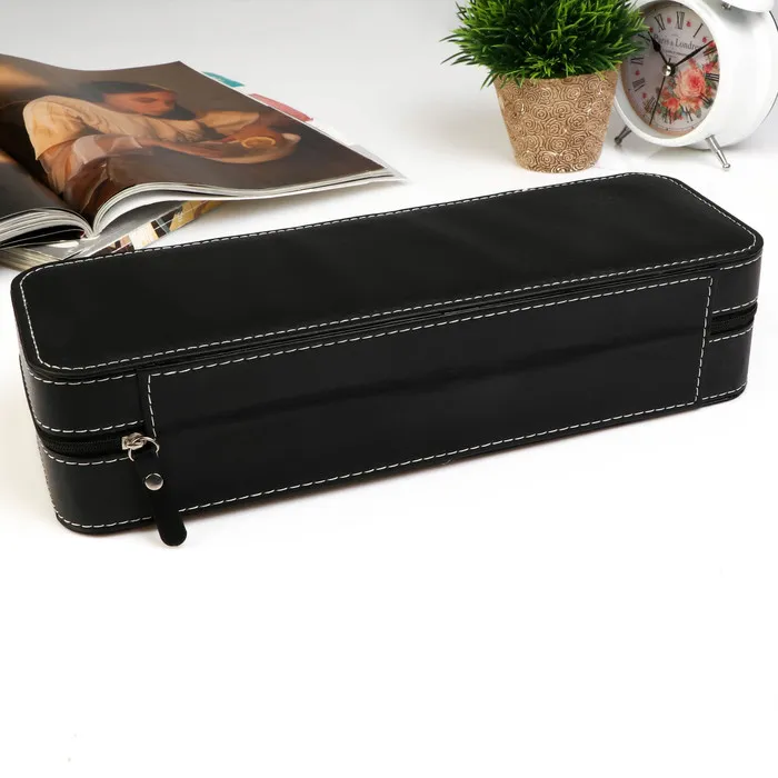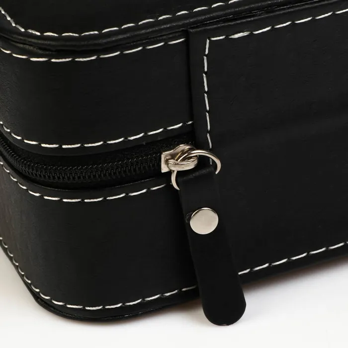 Шкатулка для часов 6 отделений «Чёрная с белой строчкой», с замком, искусственная кожа, на молнии 7.5×11×33 см — Характеристики