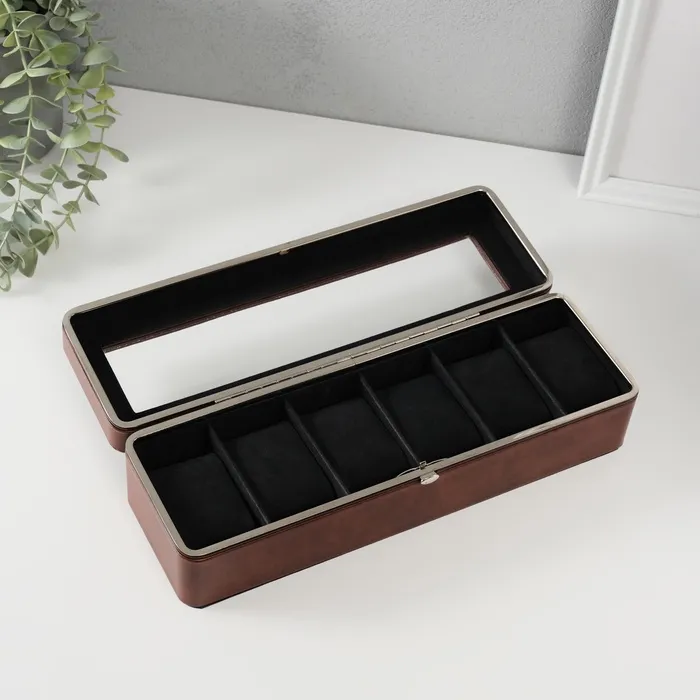 Шкатулка для часов 6 отделений «Коричневая», искусственная кожа,9.5×30.5×8 см — Характеристики