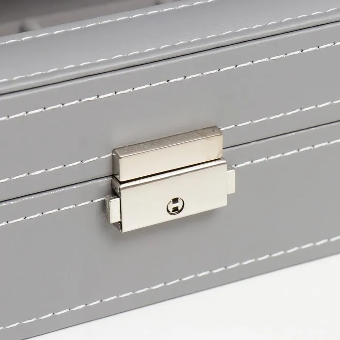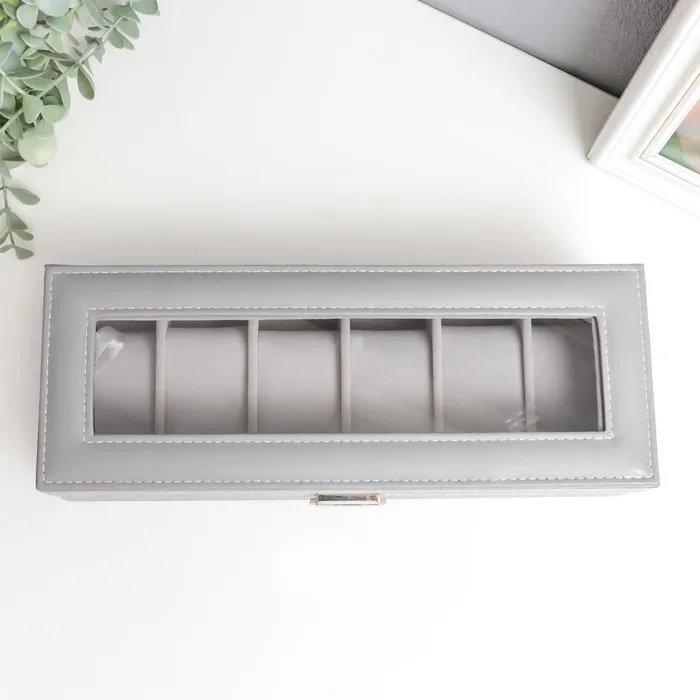 Шкатулка для часов 6 отделений «Серая с белой строчкой», искусственная кожа, 8×30×11 см
