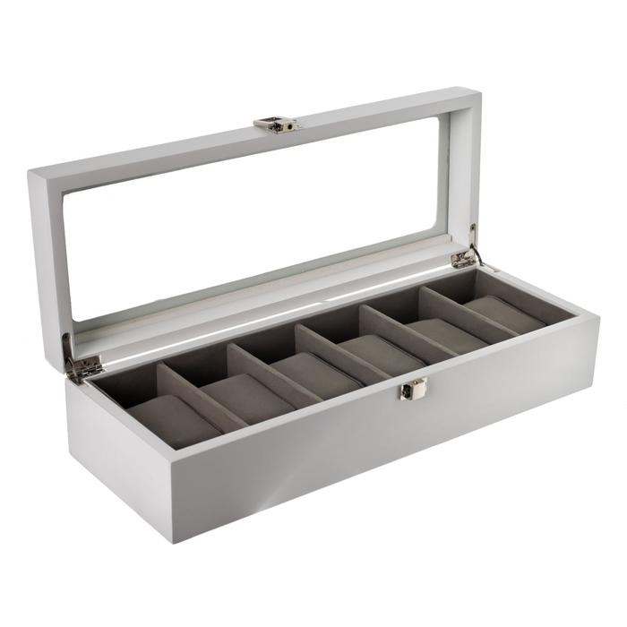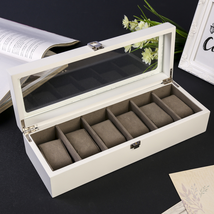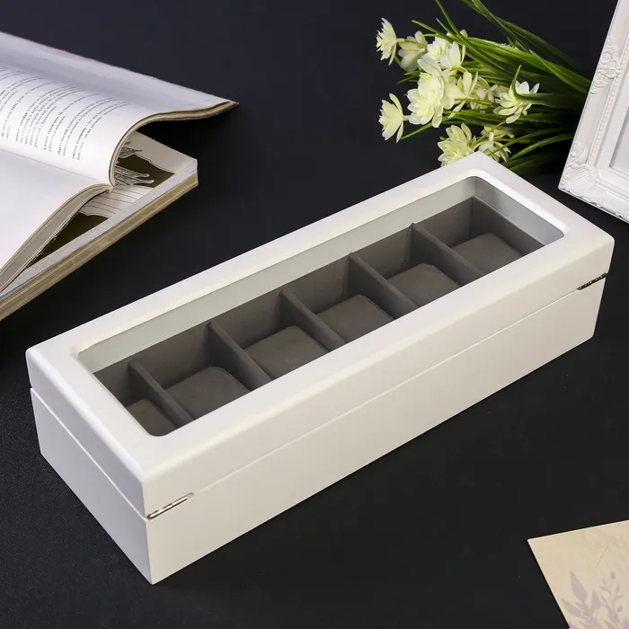 Шкатулка для часов 6 отделений «Стиль», дерево, белая, 12.7×8×33 см — Характеристики
