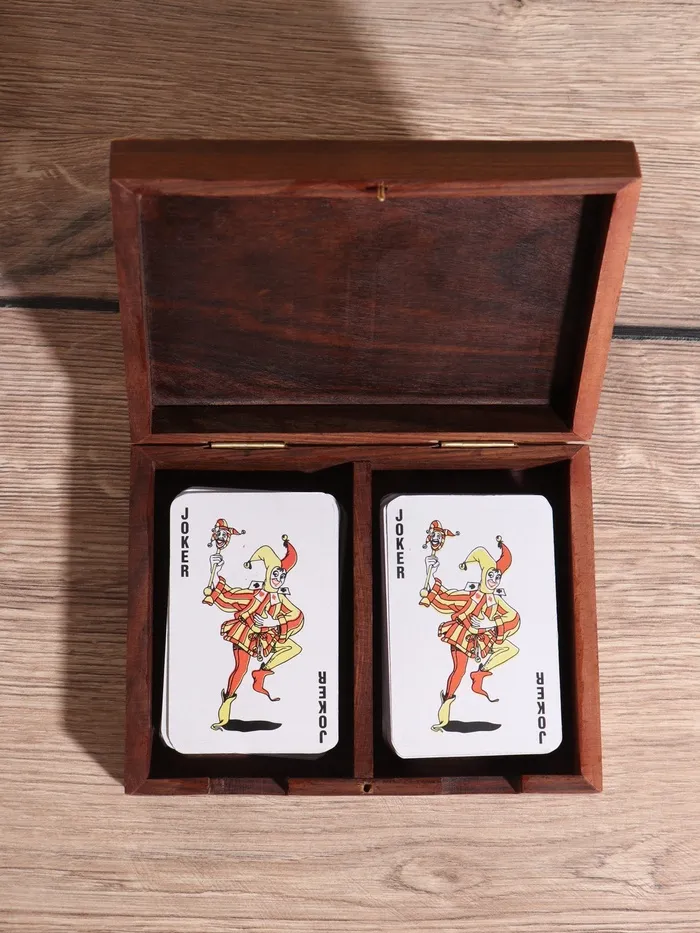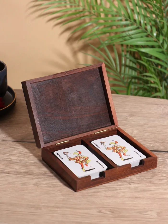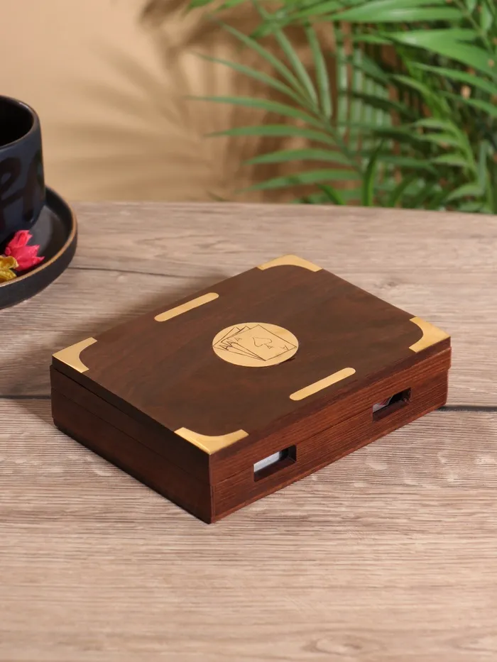 Шкатулка для хранения игральных карт 15.5х12,5 см, дерево шишам, латунь