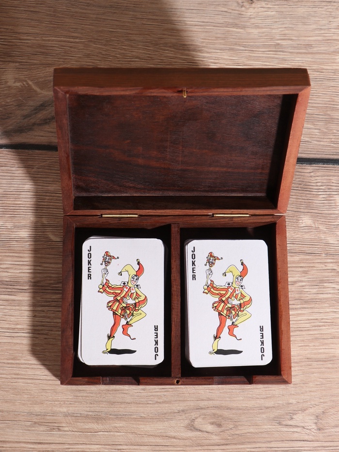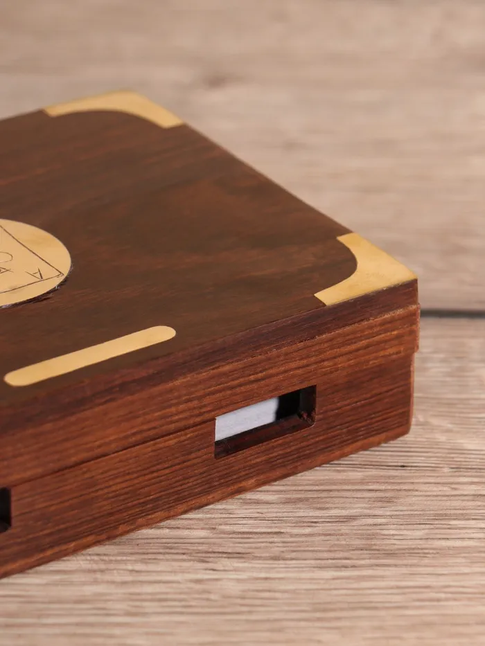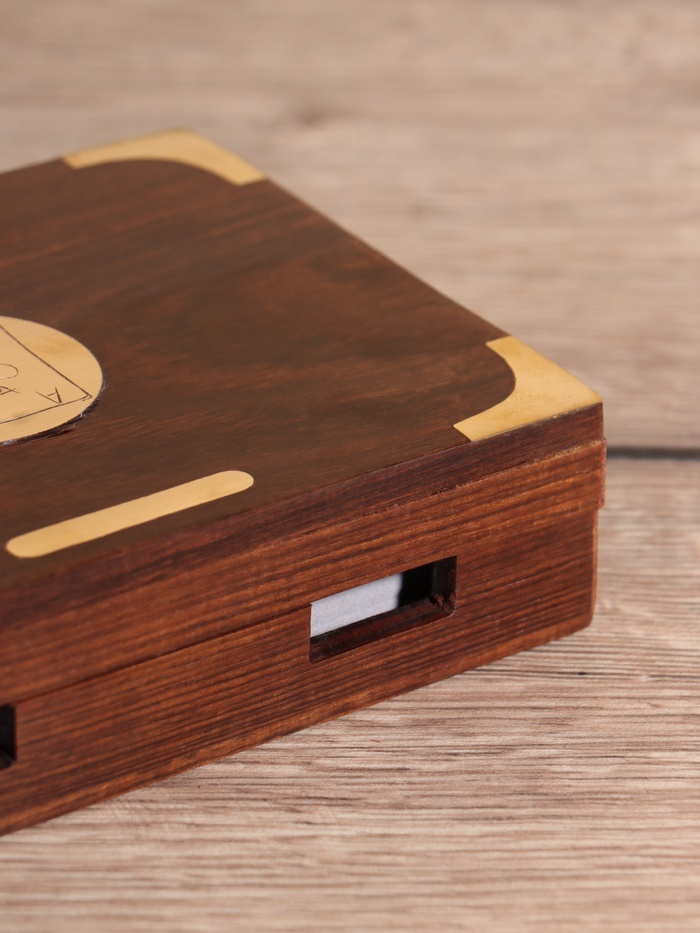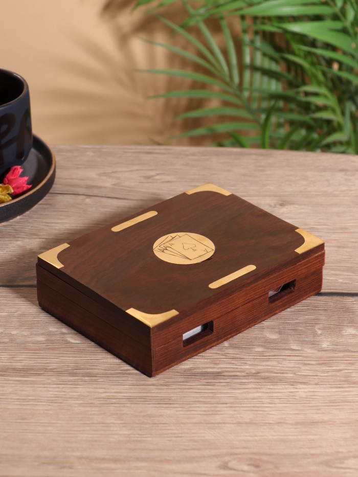 Шкатулка для хранения игральных карт 15.5х12,5 см, дерево шишам, латунь — Характеристики