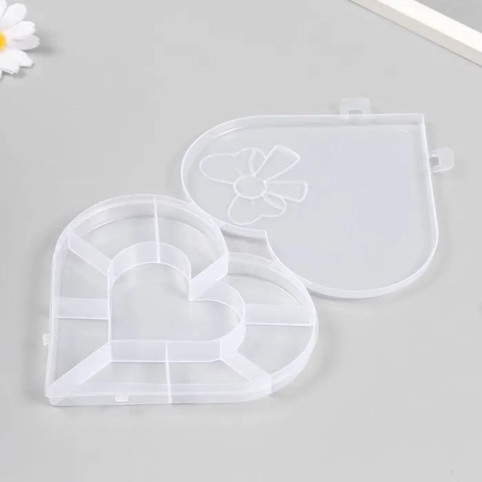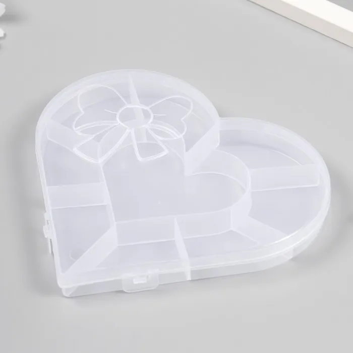 Шкатулка для хранения мелочей «Сердце с бантиком», 9 отделений, прозрачная, пластик, 15.5×14×1.8 см — Характеристики