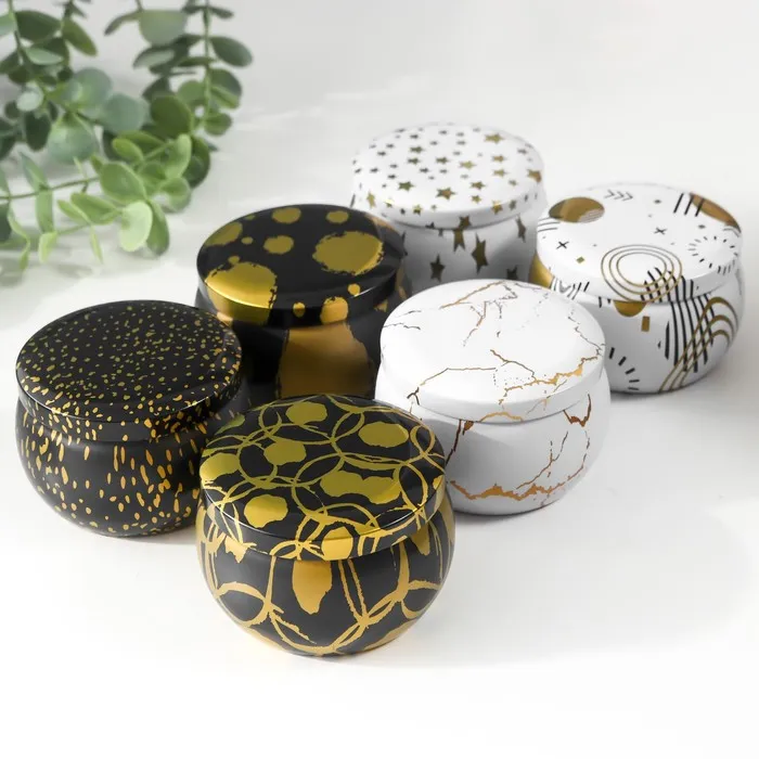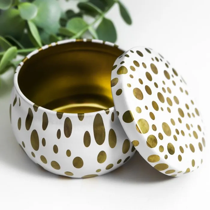 Шкатулка для хранения мелочей, украшений «Круг. Рисунки золотом», металл, 5.2×7.5×7.5 см, МИКС — Характеристики