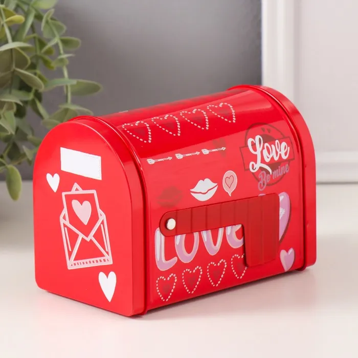 Шкатулка для хранения мелочей, украшений «Почтовый ящик. Love», металл, красная 13.3×8×9.5 см — Характеристики