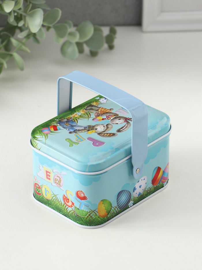Шкатулка для хранения мелочей, украшений с ручкой «Крольчата с яичками», металл, 6×10.5×8 см — Характеристики