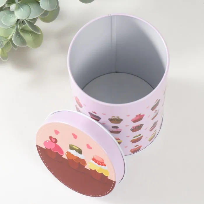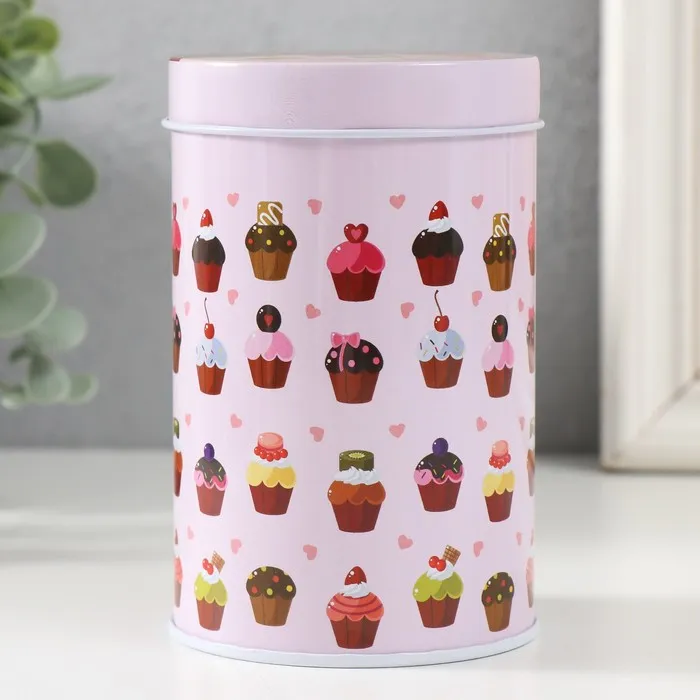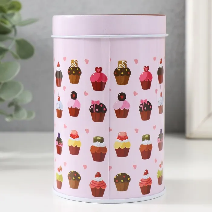 Шкатулка для хранения мелочей, украшений «Цилиндр. Кексики», металл, 7.5×7.5×11 см — Характеристики