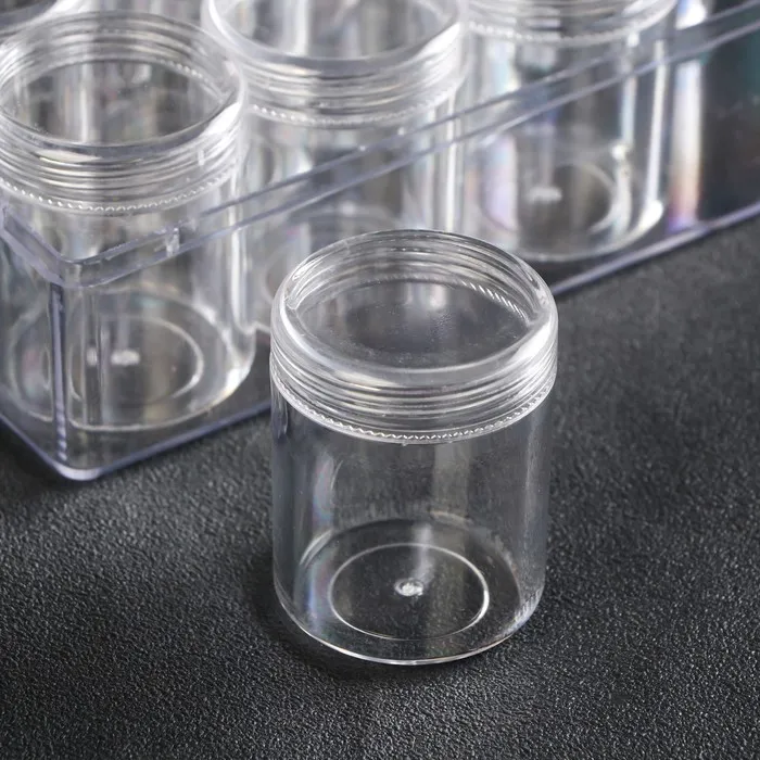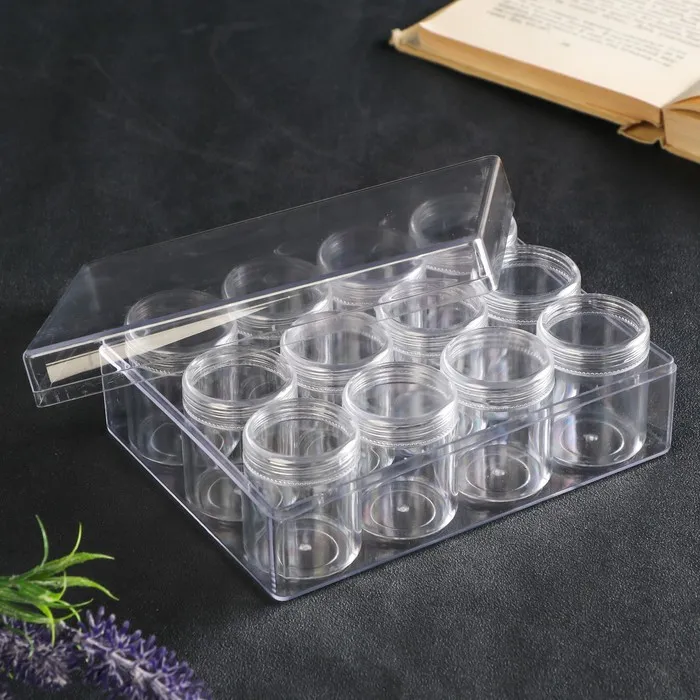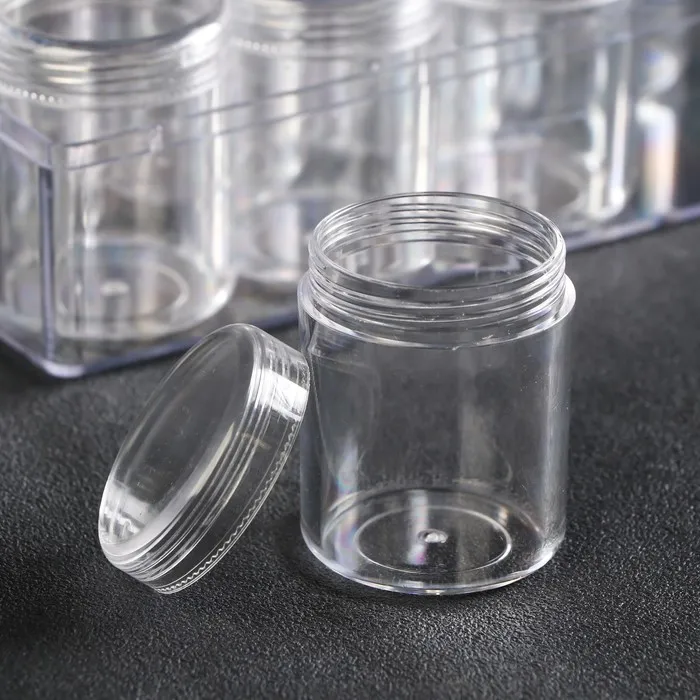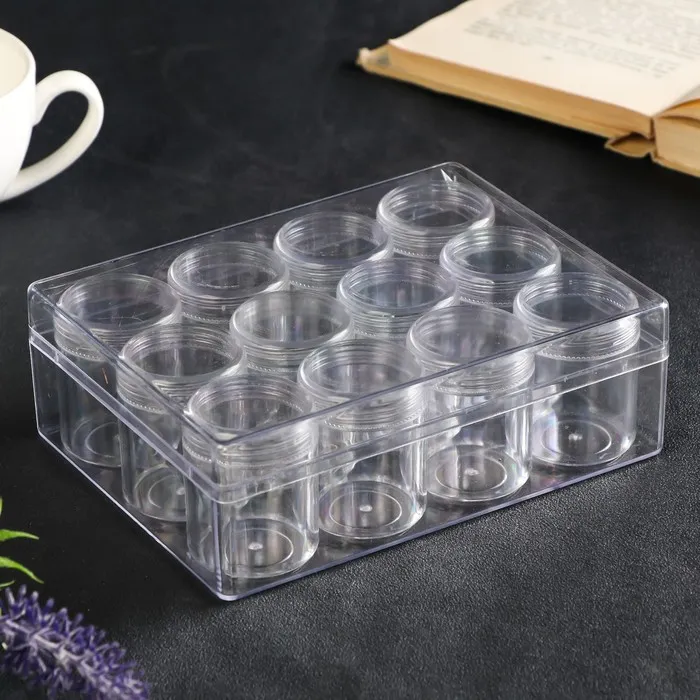 Шкатулка для мелочей «Круг», пластик, прозрачная, набор баночек для хранения 12в1: 4.8×3.7×3.7 см; 5.5×12×16 см — Характеристики