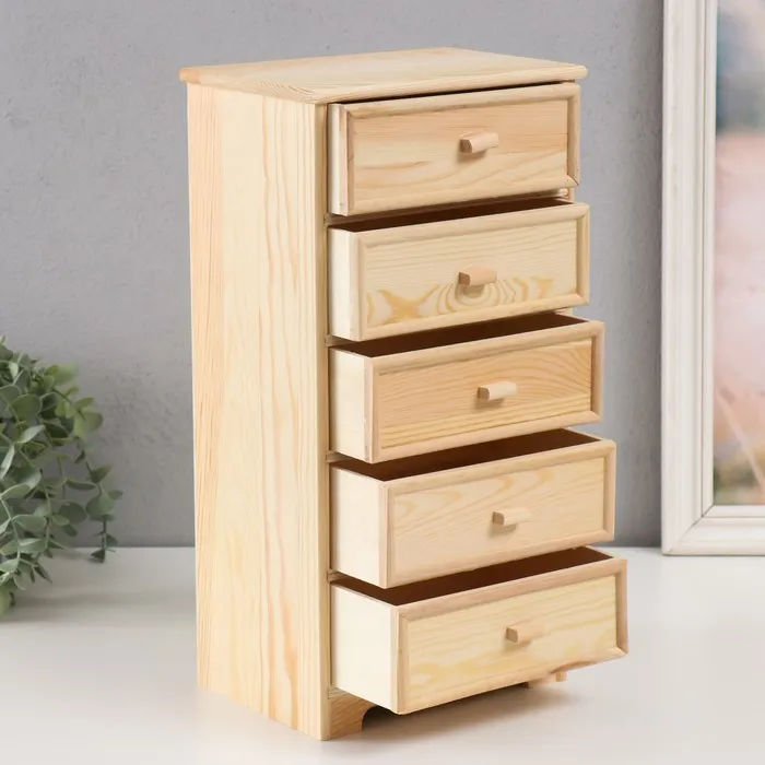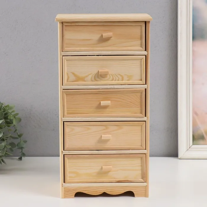 Шкатулка для росписи дерево 5 ящиков «Комод», для творчества, декора, 18×12×36 см — Характеристики