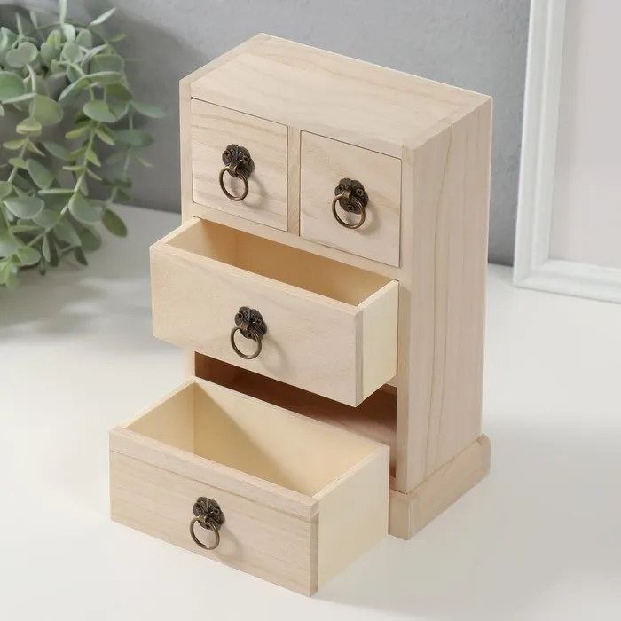 Шкатулка для росписи дерево «Комод 4 ящика», для творчества, декора, 22×15×8.2 см