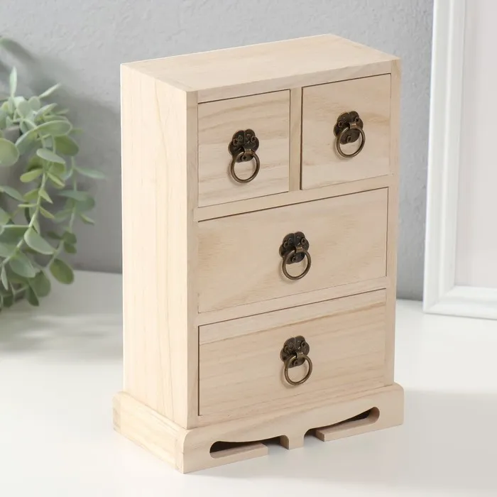 Шкатулка для росписи дерево «Комод 4 ящика», для творчества, декора, 22×15×8.2 см — Характеристики