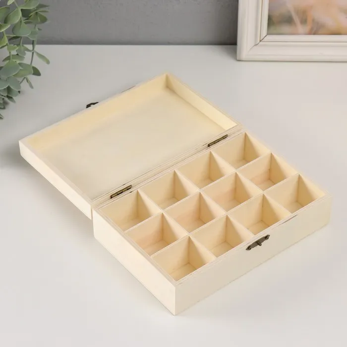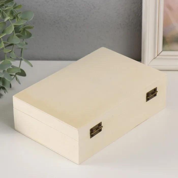 Шкатулка для росписи дерево с делениями «Прямоугольная», для творчества, декора, замок накидной, 19.5×13×6 см — Характеристики