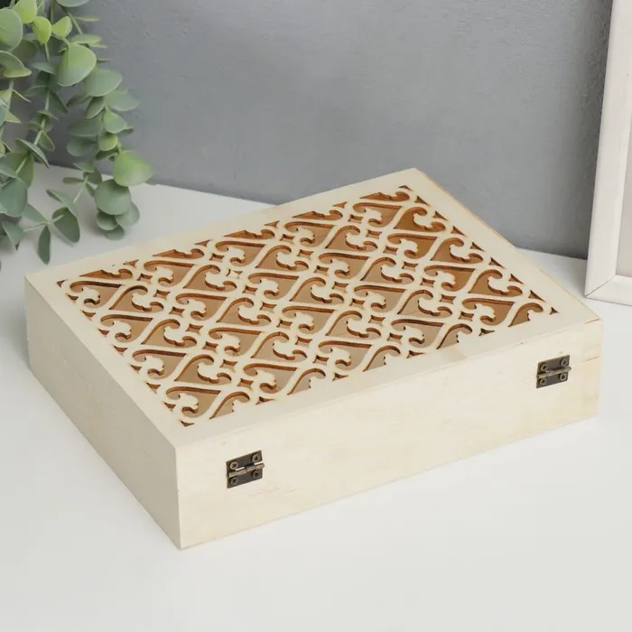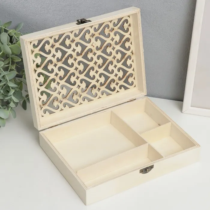 Шкатулка для росписи дерево с делениями "Узор из сердец" 5,5х22,5х17 см — Характеристики