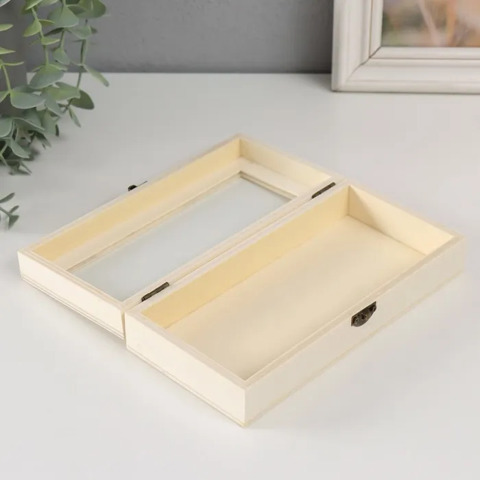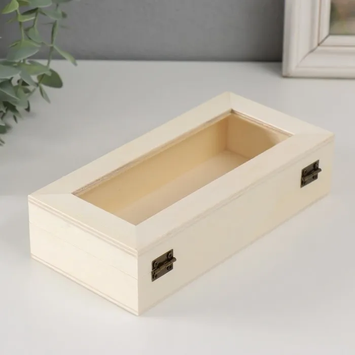 Шкатулка для росписи дерево со стеклом «Прямоугольная», для творчества, декора, замок пряжка, 18.5×9×4.5 см — Характеристики