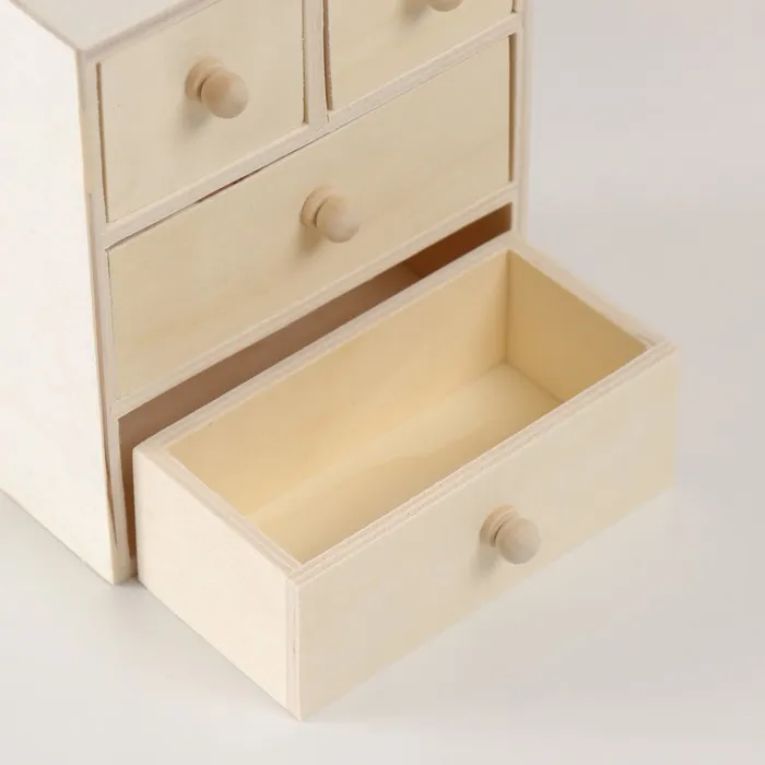 Ценное приобретение для любителей декупажа! Шкатулка для росписи "Комод" 4 ящика 14х15,5х7,5 см создана для того, чтобы стать воплощением творческих идей и безграничной фантазии тех, кто привык создавать домашние шедевры своими руками. Она изготовлена из дерева – этот материал очень удобно покрывать лаком, красками или наклеивать на него специальную бумагу.