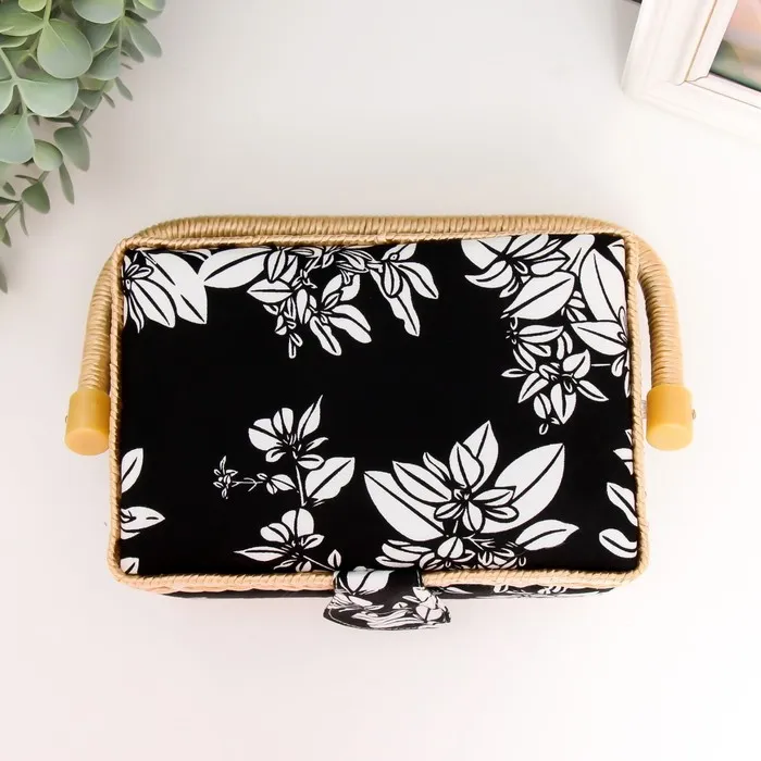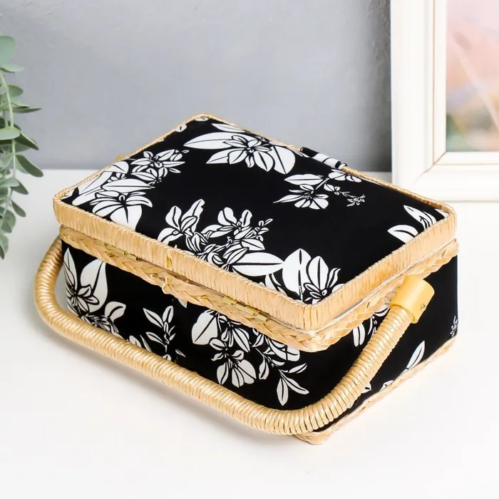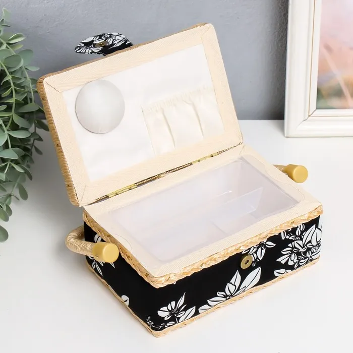 Шкатулка для рукоделия и шитья «Белые цветы на чёрном», хранение ниток, иголок, мелочи, 9.5×19.5×13 см — Характеристики