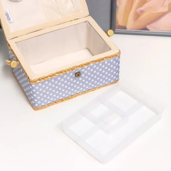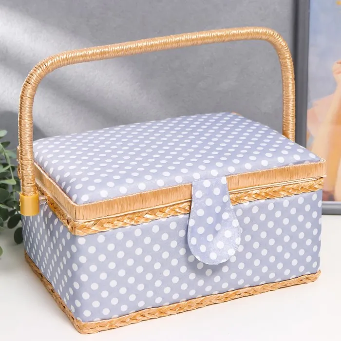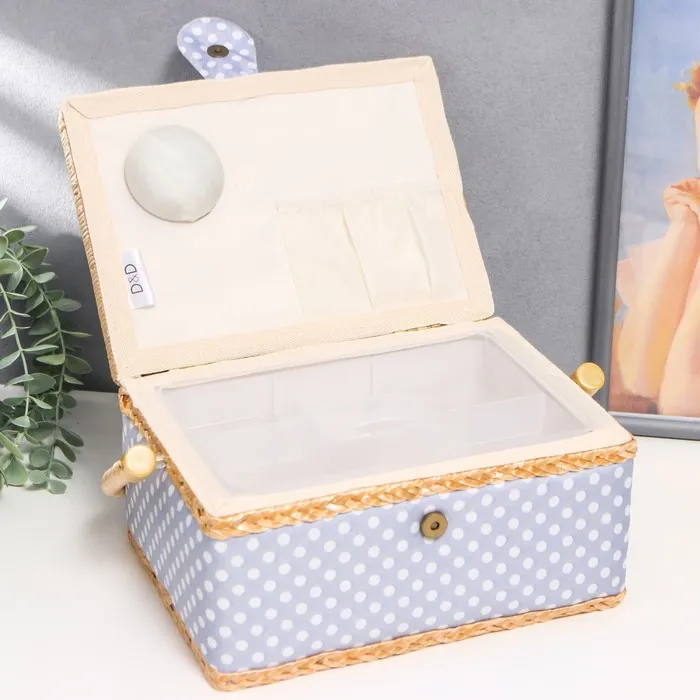 Шкатулка для рукоделия и шитья «Белый горох на голубом», хранение ниток, иголок, мелочи, 13×17.5×24 см — Характеристики