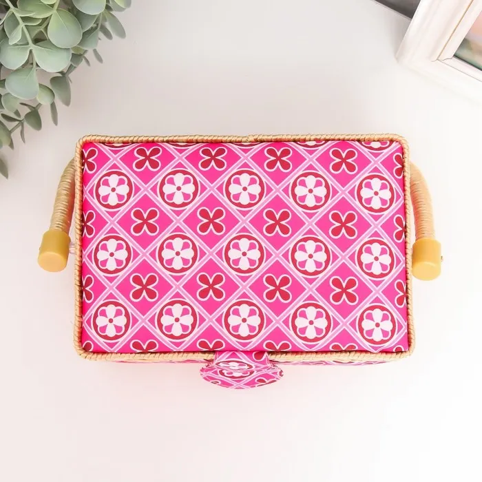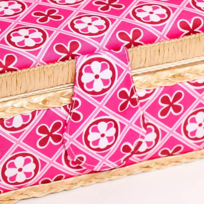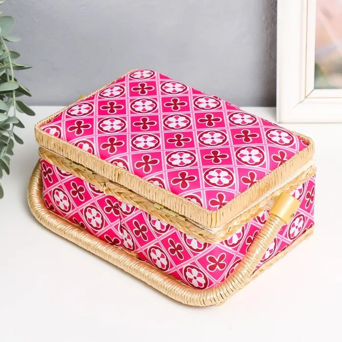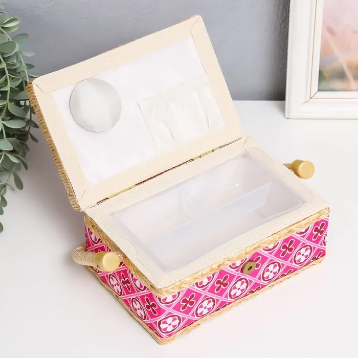 Шкатулка для рукоделия и шитья «Геометрия в цветах», хранение ниток, иголок, мелочи, розовая 9.5×19.5×13 см — Характеристики