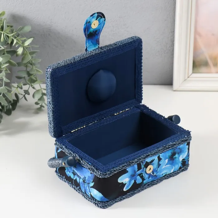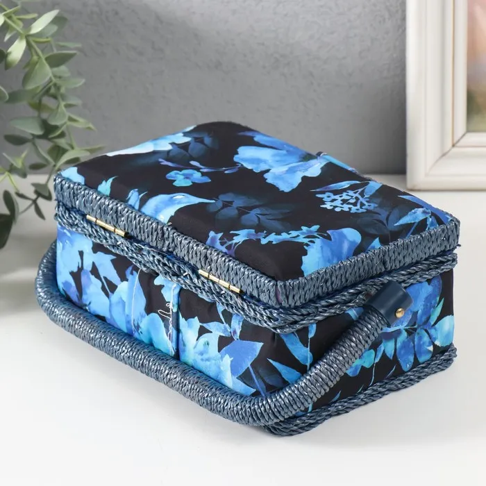 Шкатулка для рукоделия и шитья «Голубые цветы на синем», хранение ниток, иголок, мелочи, 18×12×9.5 см — Характеристики