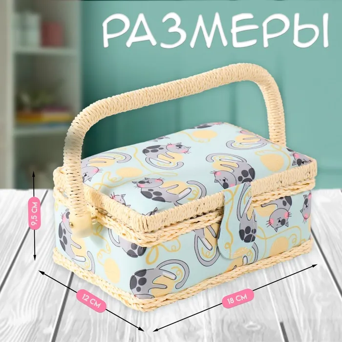Шкатулка для рукоделия и шитья «Котята на клубках», хранение ниток, иголок, мелочи, 18х12х9,5 см — Характеристики