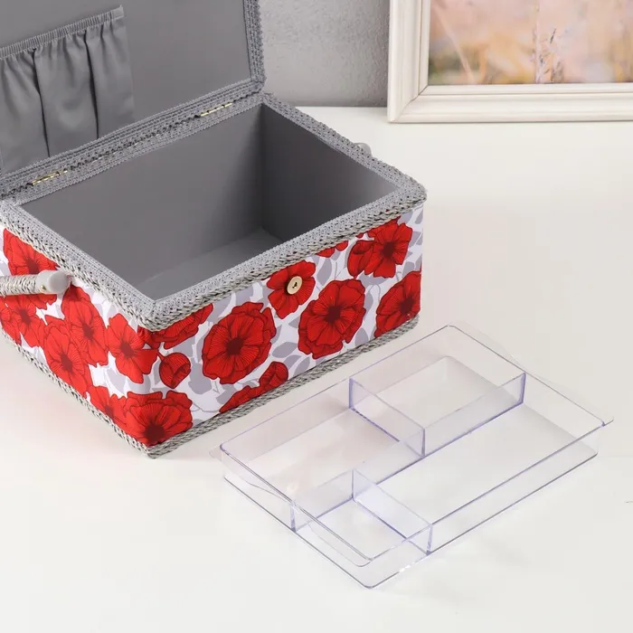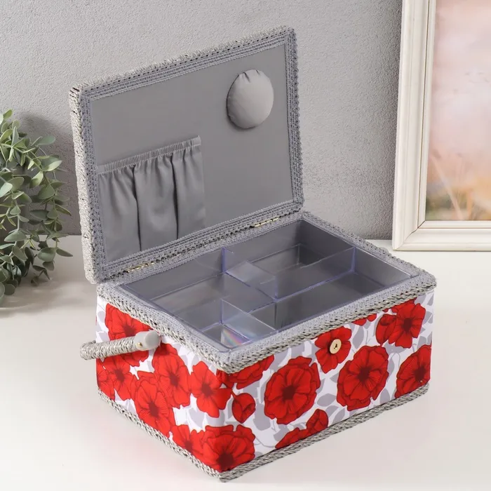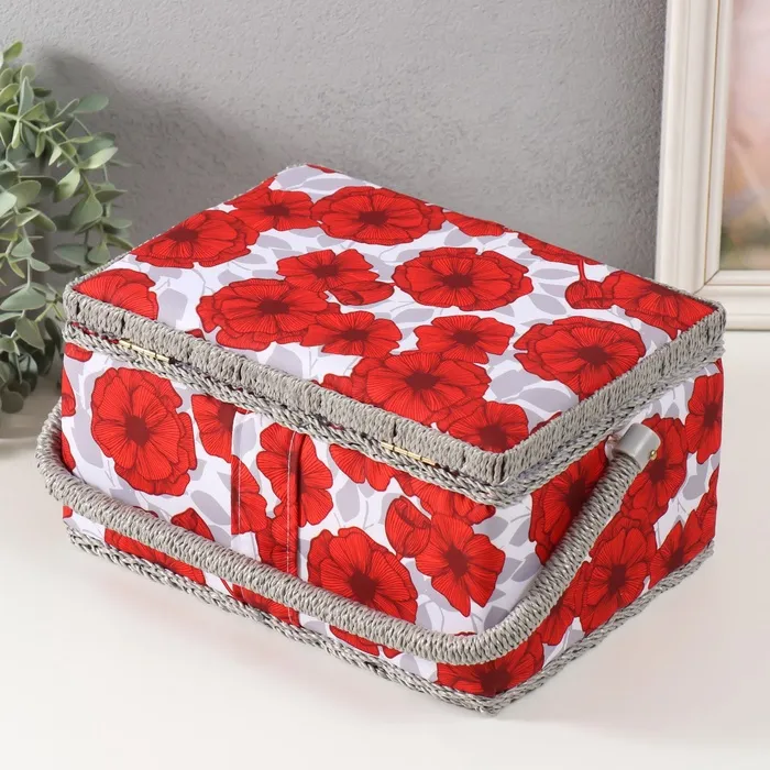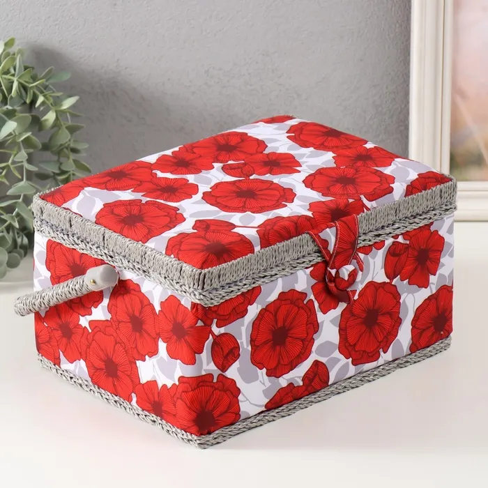 Шкатулка для рукоделия и шитья «Красные маки на белом», хранение ниток, иголок, мелочи, 19×26×14.5 см — Характеристики