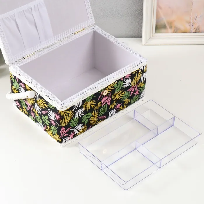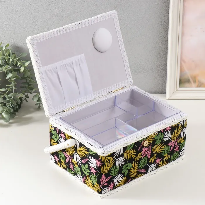 Шкатулка для рукоделия и шитья «Лесные веточки на чёрном», хранение ниток, иголок, мелочи, 19х26х14,5 см — Характеристики