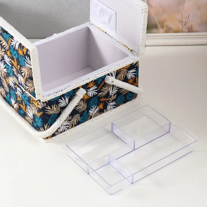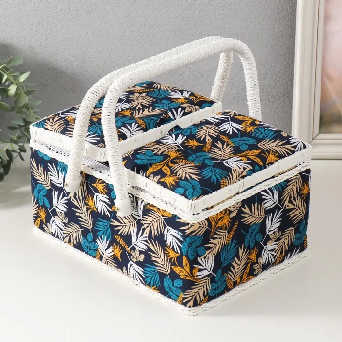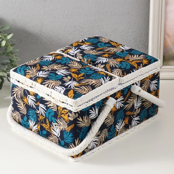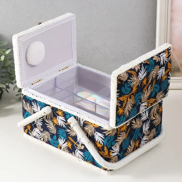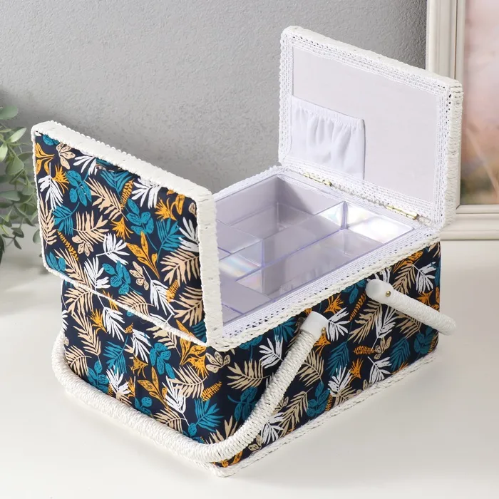 Шкатулка для рукоделия и шитья «Лесные веточки на синем», хранение ниток, иголок, мелочи, 19х26х14,5 см — Характеристики