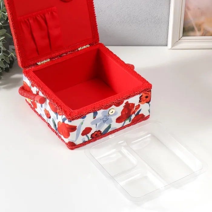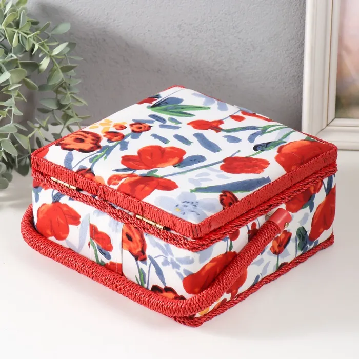Шкатулка для рукоделия и шитья «Летние цветы на белом», хранение ниток, иголок, мелочи, 20х20х11 см — Характеристики