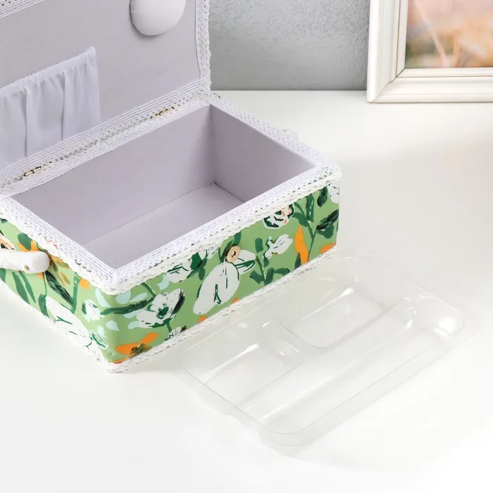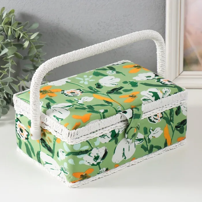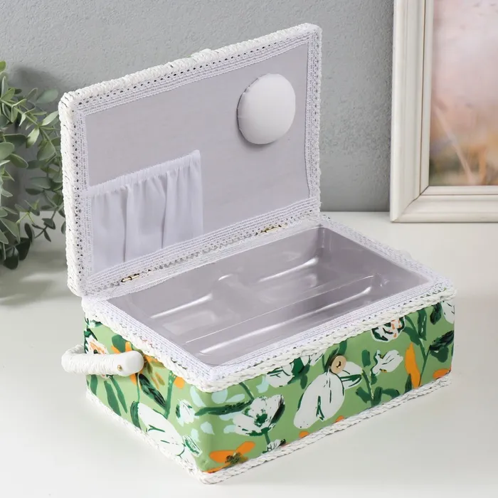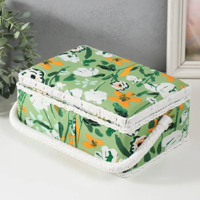 Шкатулка для рукоделия и шитья «Летние цветы на зелёном», хранение ниток, иголок, мелочи, 24х16х11 см — Характеристики