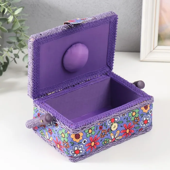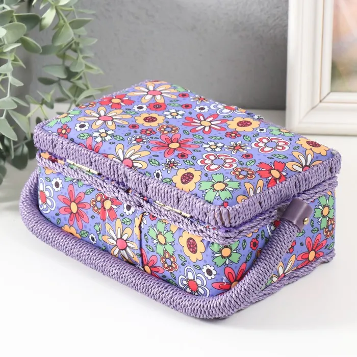 Шкатулка для рукоделия и шитья «Нарисованные цветы на синем», хранение ниток, иголок, мелочи, 18×12×9.5 см — Характеристики