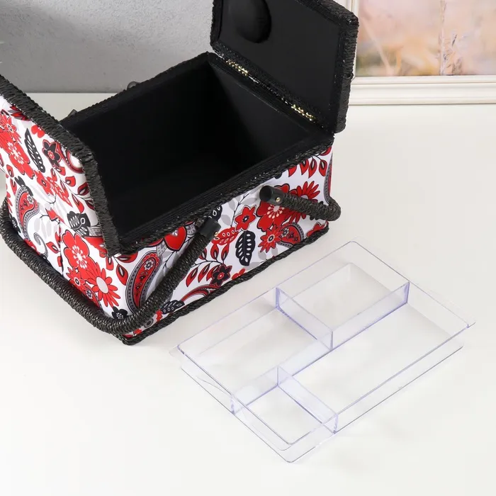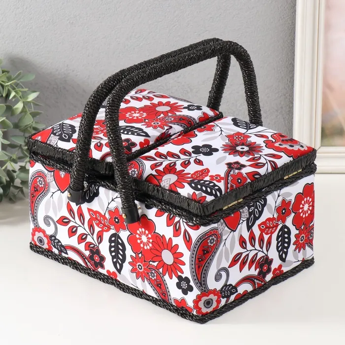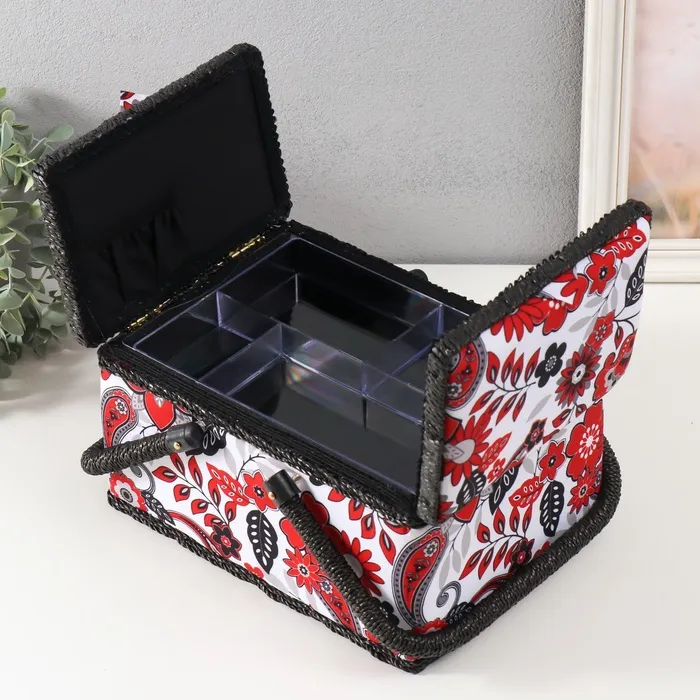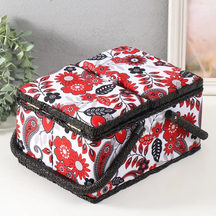 Шкатулка для рукоделия и шитья «Народный цветочный узор», хранение ниток, иголок, мелочи, 19×26×14.5 см — Характеристики