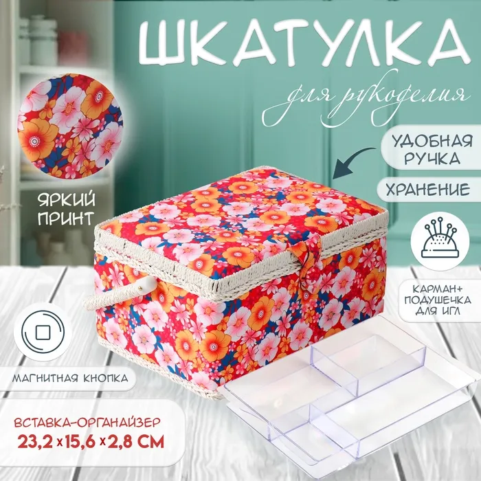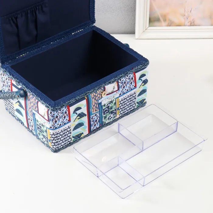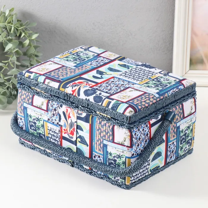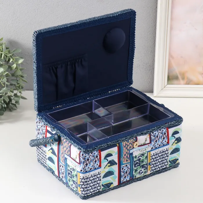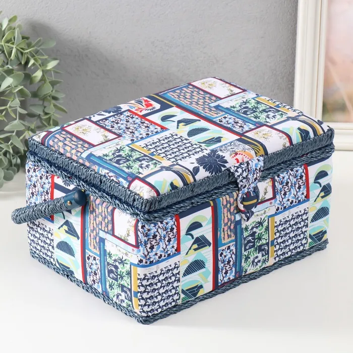 Шкатулка для рукоделия и шитья «Пэчворк. Синие цветы», хранение ниток, иголок, мелочи, 19х26х14,5 см — Характеристики
