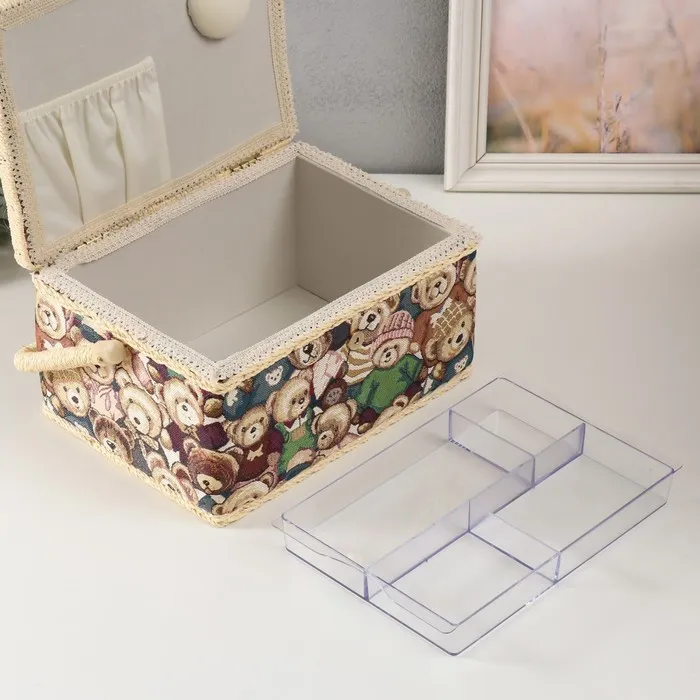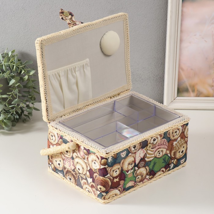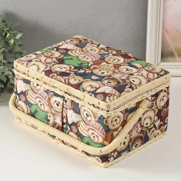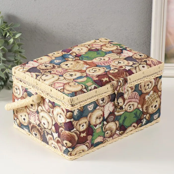 Шкатулка для рукоделия и шитья «Плюшевые медвежата», хранение ниток, иголок, мелочи, 19×26×14.5 см — Характеристики