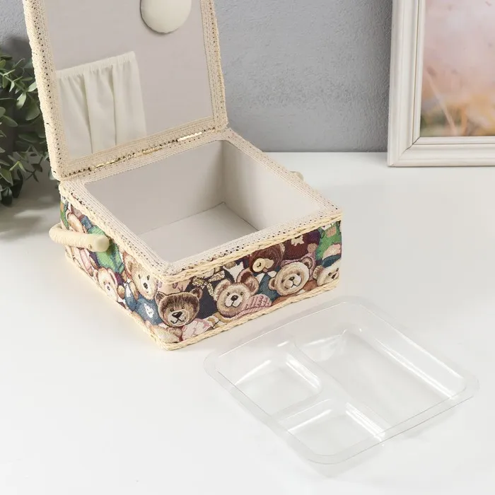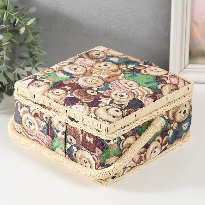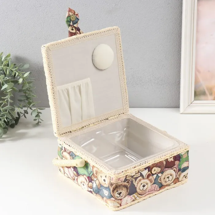 Шкатулка для рукоделия и шитья «Плюшевые медвежата», хранение ниток, иголок, мелочи, 20×20×11 см — Характеристики